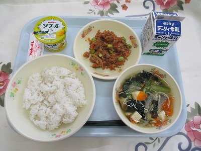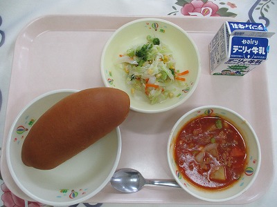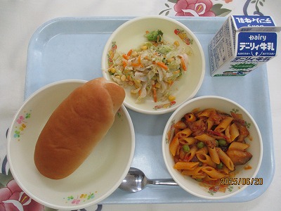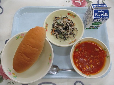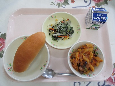 | 2025/07/01 2025年6月30日(月)の給食 【小学校】 コッペパン、牛乳、トマトとなすのペンネ、ひじきサラダ リコピンということばをきいたことはありませんか。これは、トマトのあかいいろがもつえいようそのことです。ながねんのけんきゅうで、こうさんかさようがたかいということがわかっています。せいかつしゅうかんびょうのよぼうこうかやしがいせんによるはだへのダメージ(しみやそばかす)をへらしてくれます。まっかなトマトをたくさんたべましょう 【中学校】 麦ごはん、牛乳、わかめスープ、ピリ辛味噌、レモンヨーグルト ヨーグルトはブルガリア発祥の食品として世界的に有名です。牛乳をビフィズス菌などの乳酸菌によって発酵させて作られます。発酵によって牛乳の中のたんぱく質や糖質が分解されるため、消化・吸収にやさしい食品に変わります。牛乳を飲むとお腹がゴロゴロするという人がヨーグルトなら食べられるというのもこの特性によるものです。 |