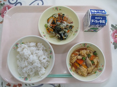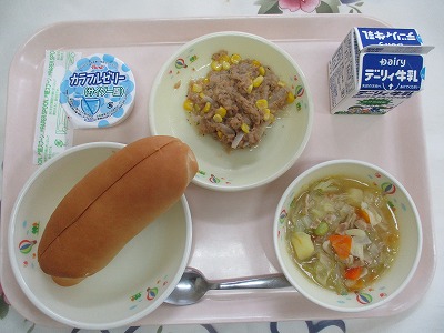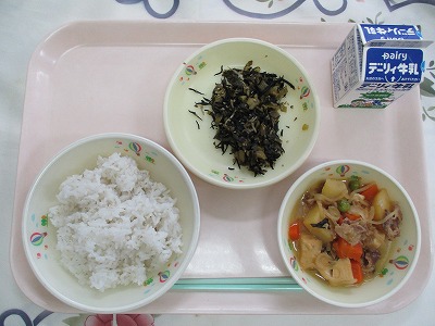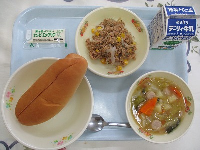 | 2025/06/27 2025年6月25日(水)の給食 【小学校】 麦ごはん、牛乳、にくじゃが、ひじきとたかなのいためもの くろいいろでじみないんしょうのひじきですが、てつぶんやカルシウムがほうふです。ひじきは、にほんぜんこくのかいがんせんにぶんぷしていて、わたしたちがなれしたしんでいる「きんこうわん」でも とられているそうです。ざんねんながらすこししかとれないので、きゅうしょくでは、かんこくさんのひじきをつかっています。 【中学校】 カットパン、牛乳、野菜のスープ煮、ツナソテー、マヨネーズ 今日はセルフツナサンドです。カットパンにツナソテーとマヨネーズをはさんで食べましょう。ところで,手は石けんできれいに洗いましたか?水だけの手洗いでは,手のバイキンを完全に落とすことはできません。むしろ水分をつけることで,バイキンの動きが活発になります。手は石けんを使って念入りに洗いましょう。 |