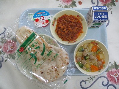 | 2025/07/08 2025年7月2日(水)の給食 【小学校】 麦ごはん、牛乳、なつやさいカレー、ハンバーグ、フルーツミックス かぼちゃ・なすなどは、なつにとれるやさいで、きょうのカレーにもはいっています。トマト・えだまめなどもなつやさいです。しゅんのやさいは、ほかのじきにくらべてえいようかがたかいです。しかもなつやさいには、からだをひやすこうかもあります。しゅんのものをしっかりとたべて、あついなつをのりこえましょう。 【中学校】 ナン、牛乳、ジャーマンスープ、キーマカレー、アセロラミルク ナンは、インドなどでよく食べられる平らなパンです、小麦粉に塩、砂糖、イーストなどを加え、発酵させた生地を薄く伸ばしてつぼ型のかまどにはりつけて焼きます。家庭にはこのタンドール窯がないので、日常的に食べているわけでなく、レストランや特別な機会に食べることが多いそうです。キーマカレーをつけて、食べましょう。 |