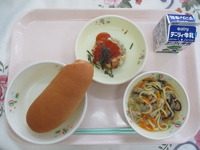 | 2025/06/23 2025年6月20日(金)の給食 【小学校】 麦ごはん、牛乳、ぶたじる、いわしのおかかに いわしは、せなかのいろがあおい「あおざかな」で、ふくまれるあぶらには、EPA、DHAというせいぶんがあり、けつえきをサラサラにし、どうみゃくこうかやこうけつあつをよぼうするちからが、あります。またあたまのはたらきもよくしてくれます。きょうの「いわしのおかかに」は、まるごとほねまでたべられます。 【中学校】 コッペパン、牛乳、トマトとなすのペンネ、ごまドレッシングサラダ リコピンという言葉を聞いたことはありませんか。これはトマトの赤い色がもつ栄養素の名前です。抗酸化作用が非常に高いことがわかっています。生活習慣病の予防効果や紫外線による肌の赤みや色素沈着などの皮膚ダメージを予防・軽減する効果が期待できるそうです。また、トマトは旨味成分も多く、炒めたり煮込んだりするとおいしい味にしてくれます。 |