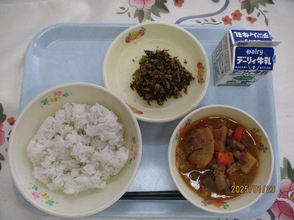 | 2025/01/29 2025年1月29日(水)の給食 【小学校】 麦ごはん、牛乳、チキンビーンズカレー、みかんサラダ カレーこは、20しゅるいいじょうのこうしんりょうをまぜあわせたものです。インドがはっしょうです。カレーこ のきいろのいろは,ウコンというこうしんりょうのいろです。にほんのカレーは,インドからイギリスへつたわったあと,にほんへつたわってきました。 【中学校】 米粉パン、牛乳、マーボー大根、かみかみポテト 大根は、栽培面積が日本一で、生産量が最も多い野菜です。根の部分は95%は水分で,ビタミンCと消化酵素を豊富に含んでいます。冬から春にかけての大根は、甘みが増しておいしいといわれています。 |