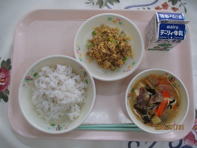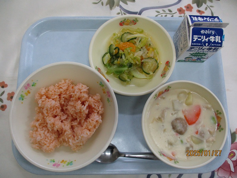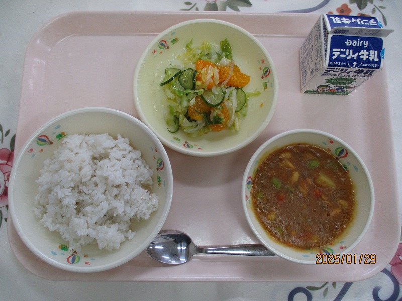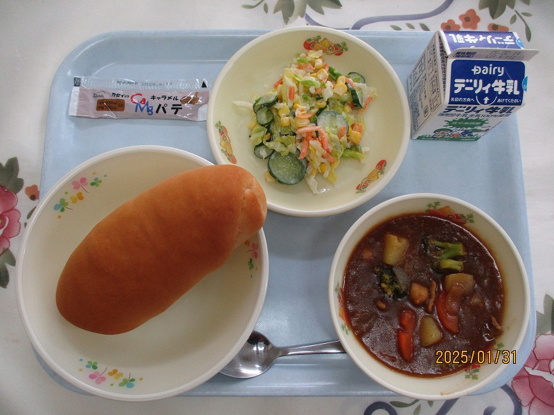 | 2025/02/03 2025年1月31日(金)の給食 【小学校】 麦ごはん、牛乳、キムチいりみそしる、ツナたまそぼろ キムチは、かんこくのだいひょうてきな つけものです。あかいいろをしているのは、とうがらしのこながはいっているからです。きゅうしょくのキムチはみなさんがたべやすいように、からくないあじつけになっているので、あんしんしてたべてくださいね。 【中学校】 コッペパン、牛乳、ポークシチュー、コールスローサラダ、キャラメルクリーム コールスローは、細かく切ったキャベツを使ったサラダのことです。歴史は古く、古代ローマ時代から食べられていたそうです。18世紀に入り、瓶入りのマヨネーズが普及したことからコールスローの人気が一気に広まったそうです。カレー粉・マスタード果物など加えて、アレンジ自在なので、家でオリジナルコールスローを作ってみませんか? |
