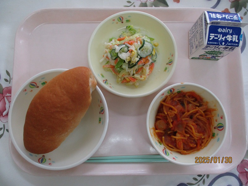 | 2025/02/03 2025年1月30日(木)の給食 【小学校】 こめこパン、牛乳、ナポリタンスパゲティ、コールスローサラダ きょうはサラダにキャベツをつかっています。キャベツは,えどじだいのおわりごろに にほんにやってきました。ビタミンCがおおくありますが,やわらかいはっぱより,しんのところにおおいので,しんまでのこさずたべましょう。また,いちょうのはたらきをよくするビタミンUというえいようもおおいです。 【中学校】 麦ごはん、牛乳、おでん、大豆入り田作り よくかむことでいろいろな効果があります。@唾液が出て消化がよくなります。Aあごが発達して歯並びがよくなります。B脳に刺激がいって頭の働きがよくなります。今日の給食も1口30回程度よくかんで、残さず食べましょう。 |