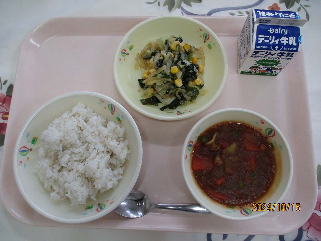 | 2024/10/18 2024年10月15日(火)の給食 【小学校】 麦ごはん、牛乳、ハヤシライス、わかめサラダ ハヤシライスは、うすぎりのにくやたまねぎをつかって、デミグラスソースをベースにしあげたものです。このなまえのゆらいはいくつかあって、はやしさんがかんがえたとか、カレーこぬきのカレーライスをいつもちゅうもんするひとが、はやしさんだったとかいわれます。いまでは、にほんうまれのようしょくとして、にんきがありますね。 【中学校】 麦ごはん、牛乳、かぼちゃのそぼろ煮、さんまのおかか煮 かぼちゃといえば、ハロウインや冬至のイメージが強いですが、一般的な旬は、秋から冬にかけての10月〜12月です。かぼちゃの皮には果肉以上にB‐カロテンや食物せんいが多く含まれています。ぜひ、皮もムダなく食べるようにしましょう。 |
