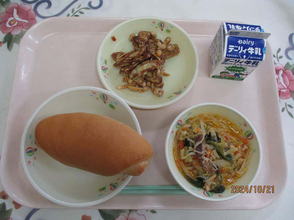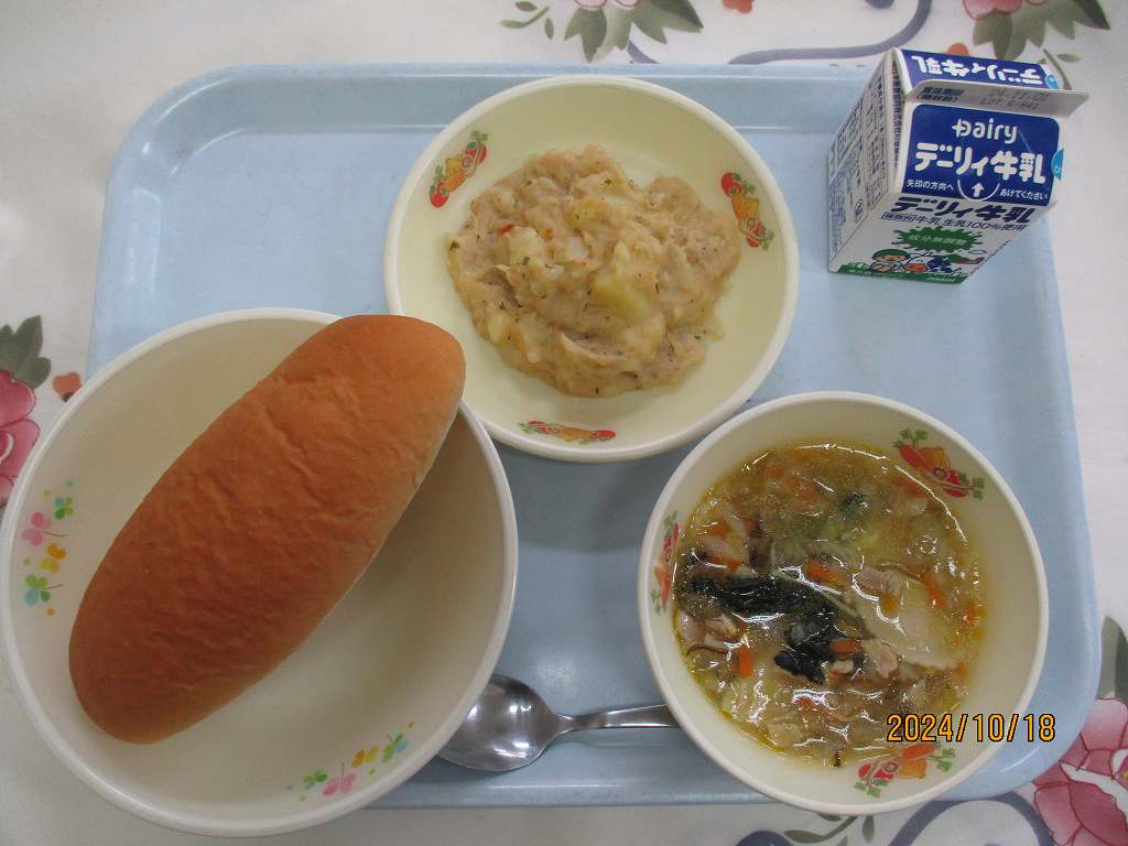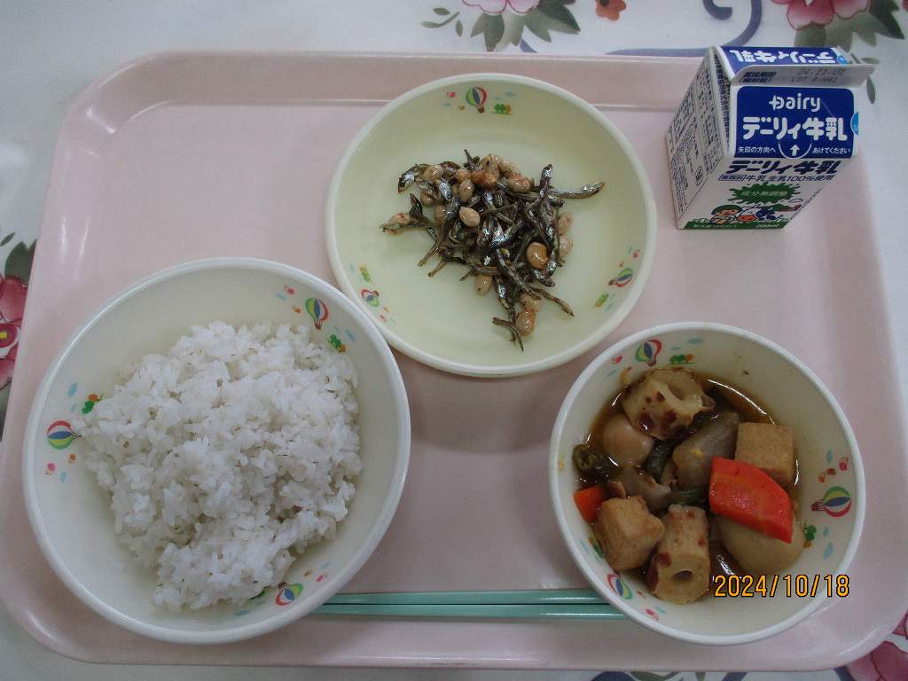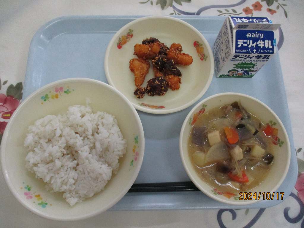 | 2024/10/18 2024年10月17日(木)の給食 【小学校】 パンプキンパン、牛乳、さつまいものクリームに、アップルドレッシングサラダ かごしまけんでは、さつまいもがたくさんつくられていて、せいさんりょうはぜんこくいちいです。きょうのさつまいもは、はやとの のうかさんがおさめてくださいました。あじわってたべましょう。 【中学校】 麦ごはん、牛乳、味噌けんちん汁、元気くんのごまがらめ 鶏レバーと鶏肉をから揚げにして、特製だれで和えました。レバーは、特に鉄分が豊富です。鉄分は、不足すると、貧血になりやすくなったり、体が疲れやすくなったり、顔色が悪くなったりします。成長期のみなさんに、食べてもらいたい食品の一つです。ごはんがすすみますよ。 |