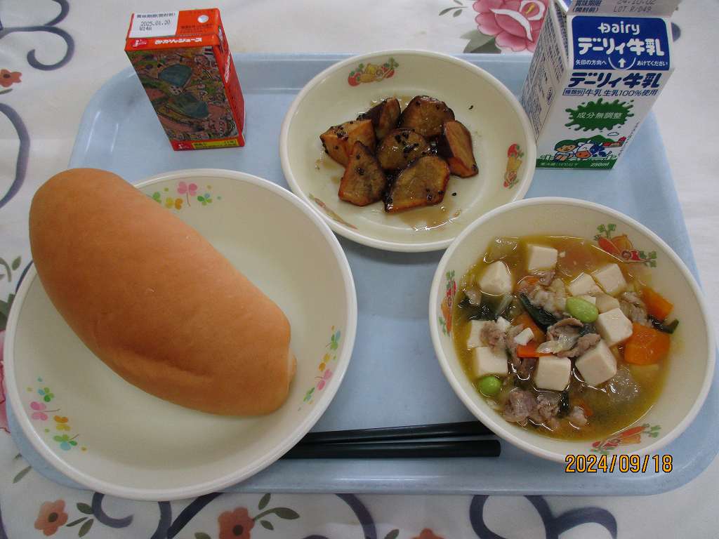 | 2024/09/19 2024年9月18日(水)の給食 【小学校】 麦ごはん、牛乳、おやこどんぶり、おしんこサラダ たまごは,からのいろがしろいろとあかちゃいろのものがありますが,にわとりのしゅるいによるちがいで,えいようかはおなじです。しょうみきげんは,なまでたべられるきかんがかいてあります。たんぱくしつがおおく,からだをつくるもとになるたべものです。きみには,てつぶんもおおくふくまれます。 【中学校】 コッペパン、牛乳、八宝豆腐、大学いも、みかん果汁 さつまいもを知ろう。名前の由来。鹿児島には,琉球から前田利右衛門(まえだりえもん)が持ち帰り県内に広めたとされ,甘藷(かんしょ)や唐芋(からいも)と呼ばれました。甘藷は甘い芋を意味し,唐芋は,唐(中国)から伝わった芋として,その名がつけられたそうです。全国的には,薩摩から広まったので,「さつまいも」という名前になりました。 |