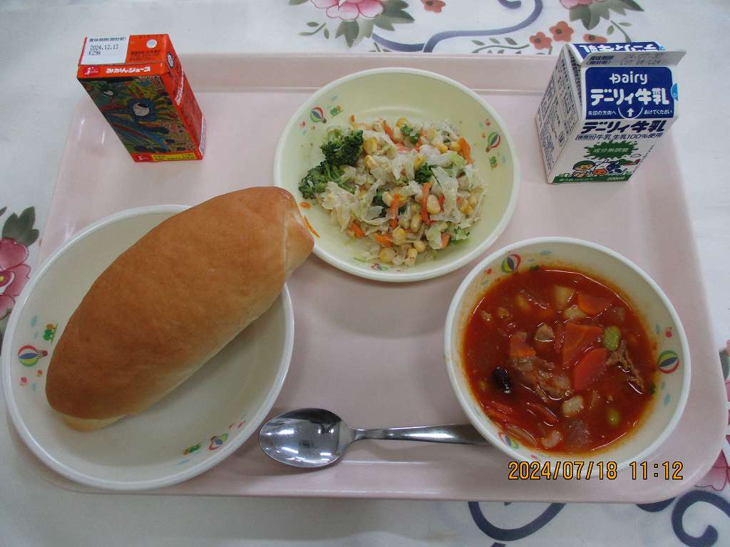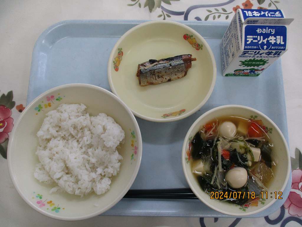 | 2024/07/19 令和6年7月18日(木)の給食 【小学校】 コッペパン、牛乳、ポークビーンズ、ごまドレッシングサラダ、みかんジュース 1がっきのきゅうしょくをふりかえって。4がつよりすききらいがなくなりましたか?えいようバランスをかんがえてたべられるようになりましたか?しょくじのマナーをまもってたべられましたか? あなつやすみちゅうもきそくただしいまいにちをおくってげんきにすごしましょう。 【中学校】 麦ごはん、牛乳、豆腐のすまし汁、さんまのゆず味噌煮 1学期の給食をふり返って。みなさん、1学期の給食をふり返ってみてください。4月よりは好き嫌いが減りましたか?栄養バランスを考えて食べられるようになりましたか?食事のマナーを守って食べられましたか? あ夏休み中も、規則正しい食生活を送って、元気に過ごしましょう。 |