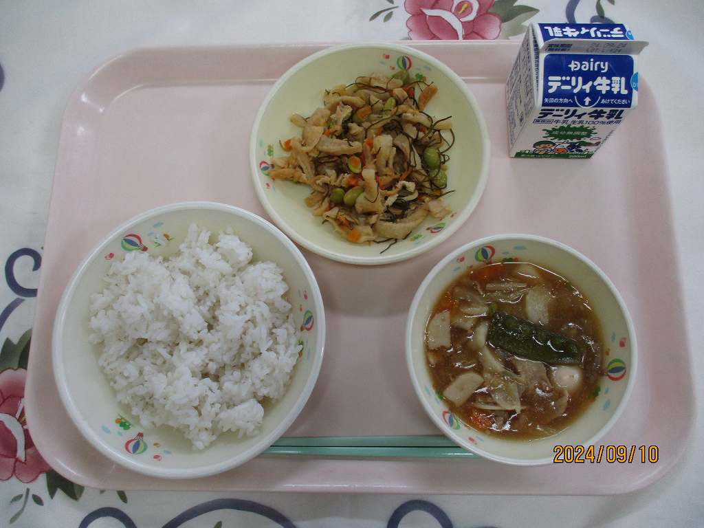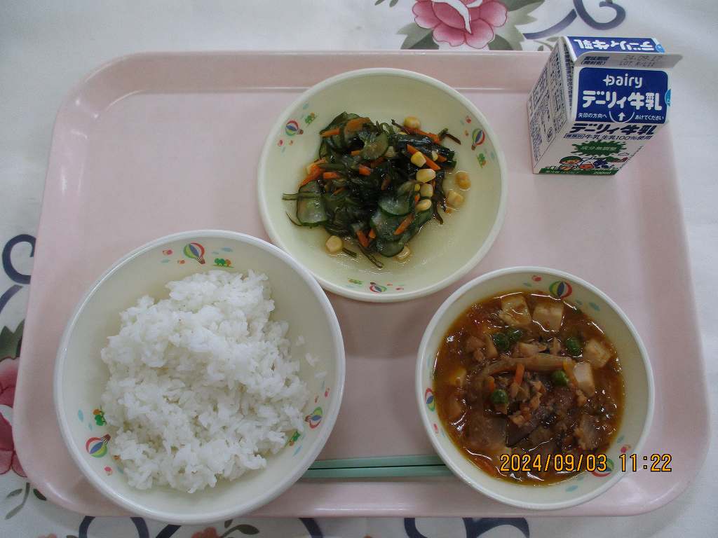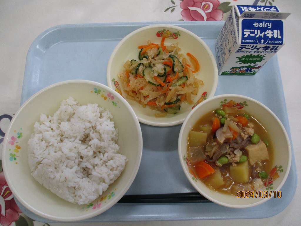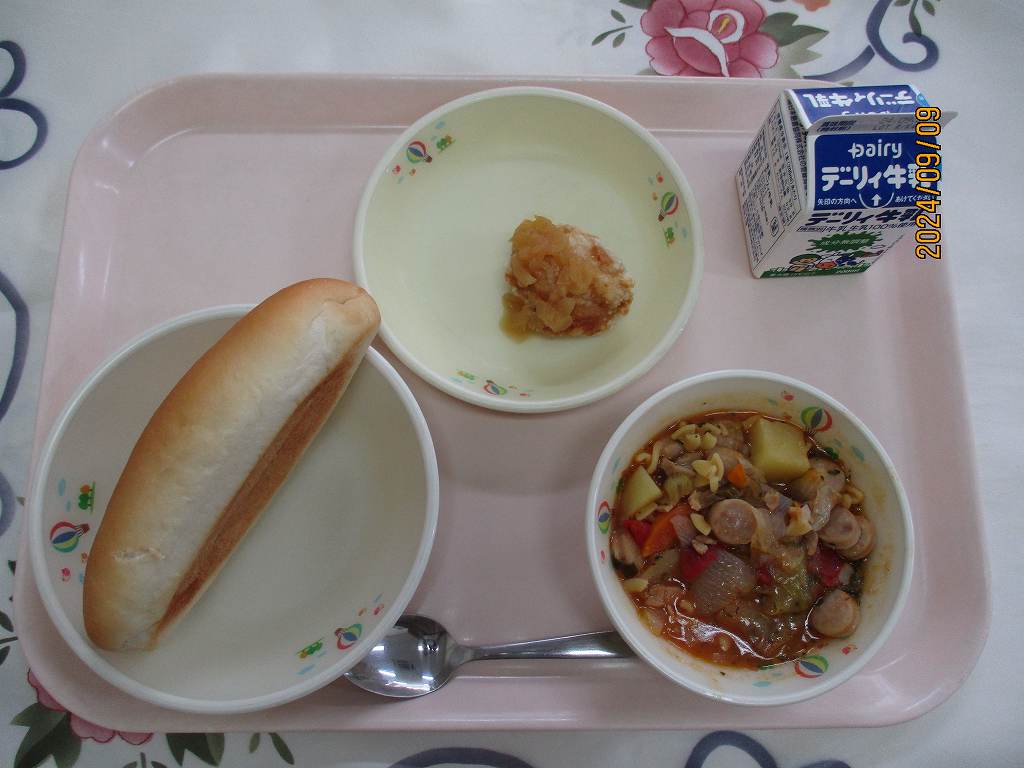 | 2024/09/09 2024年9月9日(月)の給食 【小学校】 コッペパン、牛乳、ミネストローネ、あげどりのアップルソース あさごはんは,いちにちをげんきにスタートするために とてもたいせつです。あさごはんをたべると,おやすみモードのからだに スイッチがはいり,かつどうモードに きりかわります。スイッチをオンにして,からだ,のうみそ,そしてちょうを,かっぱつにうごかしましょう。 【中学校】 白ごはん、牛乳、家常豆腐、チンゲン菜ソテー 今日は白ご飯です。給食では,「麦ご飯」が定番ですが,時々「白ご飯」を出すことなりました。それは,令和6年度の給食用の米を100%霧島市内産のもので準備できるようになったからです。そして霧島市内産のおいしい米を子どもたちにしっかり味わってほしいという思いからです。地場産の米を残さず食べてくださいね。 |