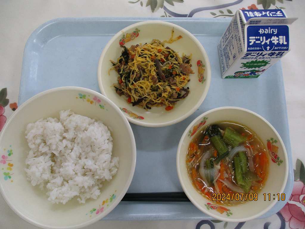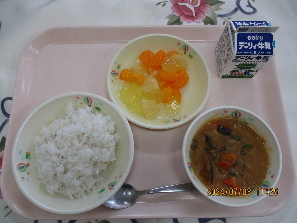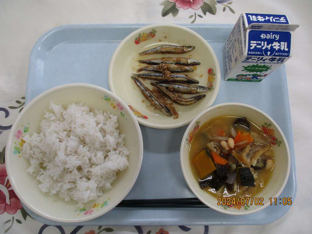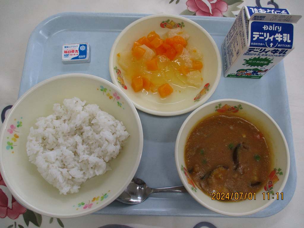 | 2024/07/03 令和6年7月1日(月)の給食 【小学校】 こくとうパン、牛乳、はっぽうどうふ、あげぎょうざ とうふは・・・ たんぱくしつがおおくふくまれていて、カロリーがひくいのでけんこうしょくひんとしてしられています。また、とうふをおおくたべるちいきは、ながいきするひとがおおいともいわれています。 【中学校】 麦ごはん、牛乳、夏野菜カレー、フルーツミックス、1食チーズ夏にとれる野菜で、今日のカレーにも入っています。他にもトマトやピーマン、きゅうりなども夏野菜の代表的なものです。旬の野菜は、他の時期に比べて栄養価が高いです。夏野菜をしっかりと食べて、暑い夏を乗りこえましょう。 かぼちゃ・なすなどは・・・ |