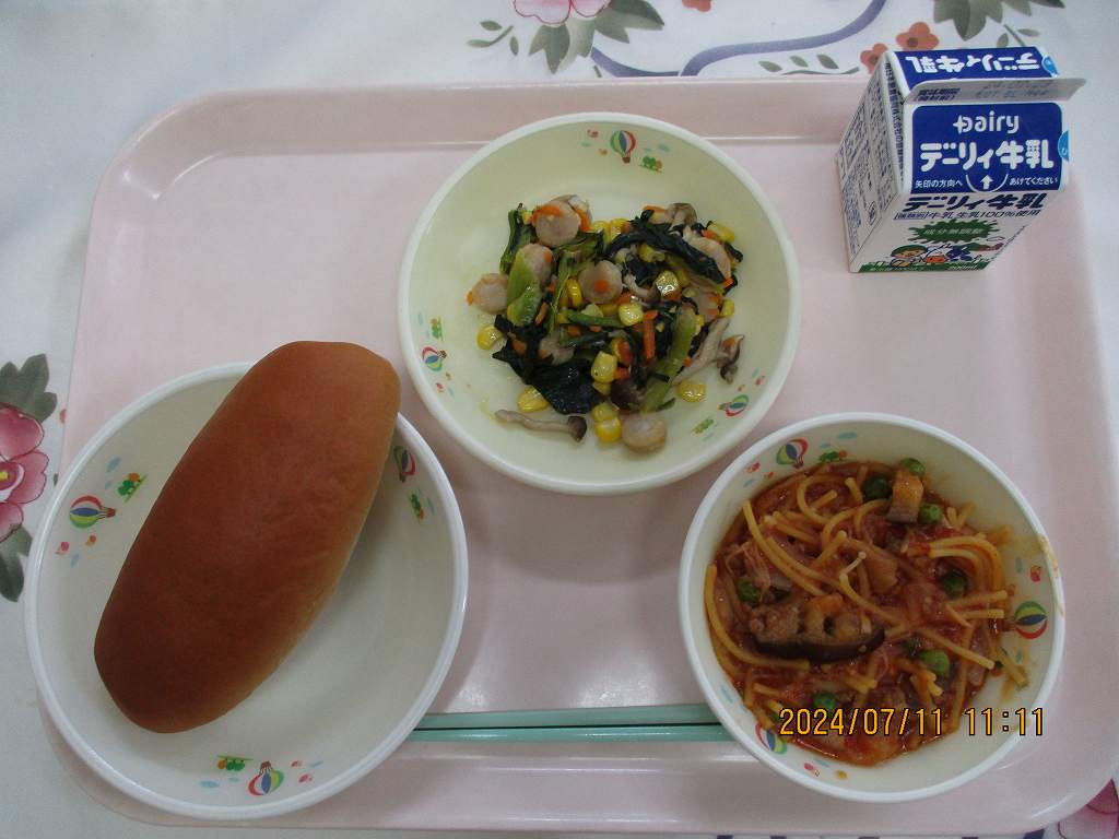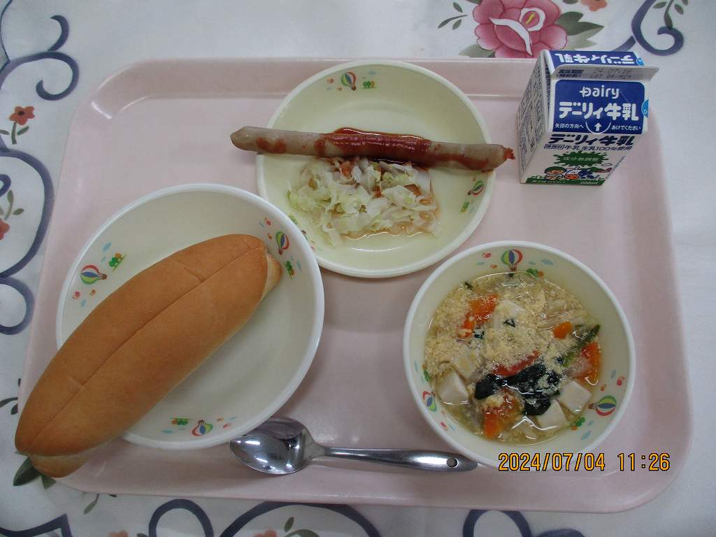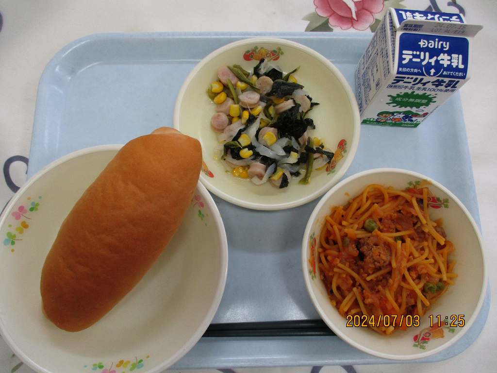 | 2024/07/12 令和6年7月11日(木)の給食 【小学校】 こくとうパン、牛乳、トマトとなすのスパゲティ、ウインナーとこまつなのソテー こくとうは・・・あまみおおしまのとくさんひんです。さとうきびが げんりょうで12月〜3月にかけてしゅうかくされます。しろざとうよりもビタミンやミネラルがおおくふくまれています。 【中学校】 白ごはん、牛乳、麻婆豆腐、春雨サラダ 霧島市産の米。今年度から霧島市産の「あきほなみ」という品種の米を使用しています。ご飯は炭水化物を多く含んでおり、体のエネルギー源になります。地元の食材を味わい、生産者へ感謝して食べましょう。 |