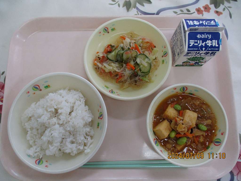 | 2024/07/12 令和6年7月9日(火)の給食 【小学校】 麦ごはん、牛乳、ジャージャンドウフ、はるさめサラダ ジャージャンドウフは・・・ ちゅうごくのかていりょうりのひとつです。とうふをあぶらであげて、にくややさいをいれてあじつけをしたりょうりです。きゅうしょくでは、あつあげをつかってつくります。 【中学校】 麦ごはん、牛乳、春雨スープ、ビビンバ ビビンバは・・・ ご飯の上にナムルや肉、卵などを盛り付け、混ぜて食べる、韓国の代表的な料理です。韓国語でビビンは「混ぜ」、バは「ご飯」を意味します。今日はしっかり「ビビン」していただきましょう。 |