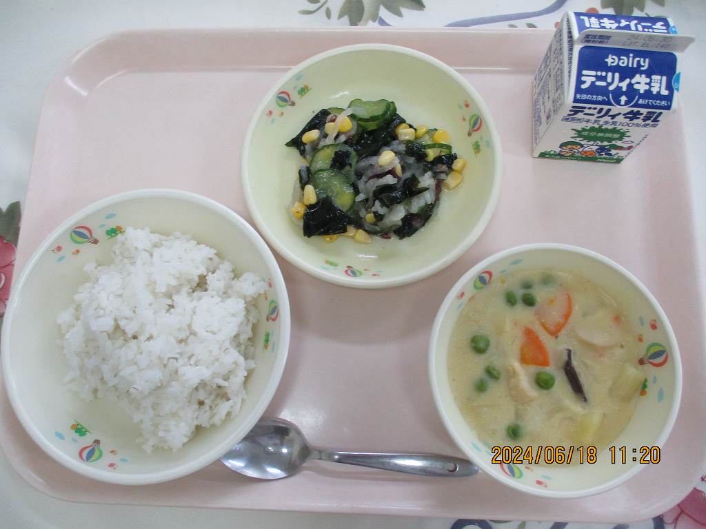 | 2024/06/19 令和6年6月18日(火)の給食 【小学校】 麦ごはん、牛乳、ホワイトカレー、海藻サラダ カレーといえば・・・きいろいルウをそうぞうします。でもきょうはなんと「ホワイトカレー」です。カレーのきいろは「ターメリック」のスパイスのいろですが、ホワイトカレーはターメリックをいれずにつくったしろいルウをつかいます。みためは、まるでクリームシチューです。でもたべてみると、あらふしぎ。カレーのあじです。 【中学校】 麦ごはん、牛乳、こさん竹のみそ汁、キムタクご飯(具)朝鮮の漬物の名称です。材料は40〜50種類も入っています。キムチに含まれるとうがらしの辛みの成分は、カプサイシンといいます。これは、体内の脂肪を分解する酵素の働きを活性化させるので、ダイエットに効果があるともいわれています。 キムチは・・・ |