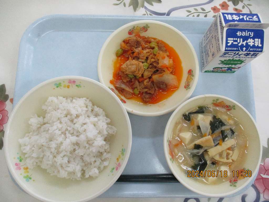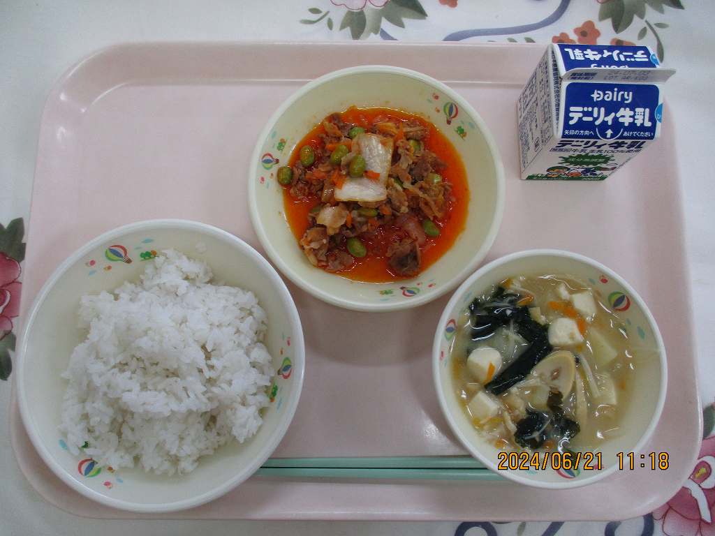 | 2024/06/24 令和6年6月21日(金)の給食 小学校】 麦ごはん、牛乳、こさん竹のみそ汁、キムタクご飯(具) ぶたにくのえいよう。ぶたにくには,たんぱくしつがおおくふくまれます。そのほか,ビタミンB1もおおくふくまれます。ふそくするとつかれやすくなったり,イライラしたりします。のこさずにたべましょう。 【中学校】 米粉パン、牛乳、ミートボールと豆のトマトソース煮、パインサラダ 大豆は・・・五穀の一つとして、古代から重要な作物です。原産地は中国北部といわれています。昔から重要なたんぱく源で、煮豆、枝豆に用いられ、豆腐や豆乳、ゆば、納豆、きな粉の原料となります。食物繊維も多く含まれています。 |