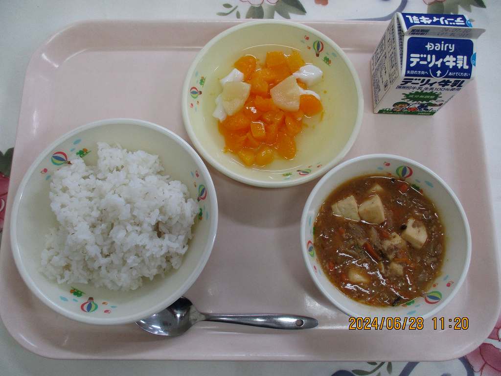 | 2024/07/01 令和6年6月28日(金)の給食 【小学校】 麦ごはん、牛乳、マーボー豆腐、、あんにんフルーツポンチ 1にち200グラムとりましょう!くだものには、ビタミンやしょくもつせんいなど、いろいろなえいようがはいっています。バナナ1ぽんと、りんご はんぶんで200グラムです。そのじきのきせつのくだものをたべましょう。 【中学校】 コッペパン、牛乳、具だくさんちゃんぽん、レバーのオーロラソースあえ、みかん果 今日は、鶏肉の・・・レバーと砂肝をから揚げにして、特製オーロラソースで和えました。レバーは、特に鉄分が豊富です。鉄分は、不足すると、貧血になりやすくなったり、体が疲れやすくなったり、顔色が悪くなったりします。成長期のみなさんに、食べてもらいたい食品の一つです。 |