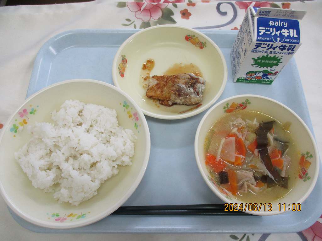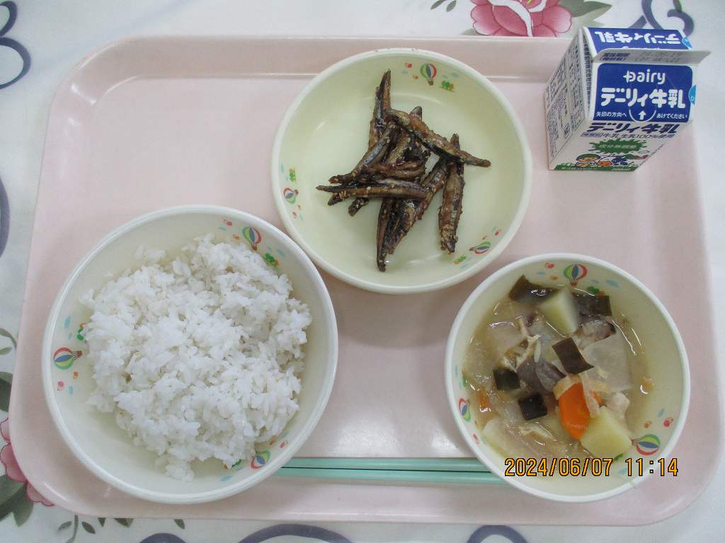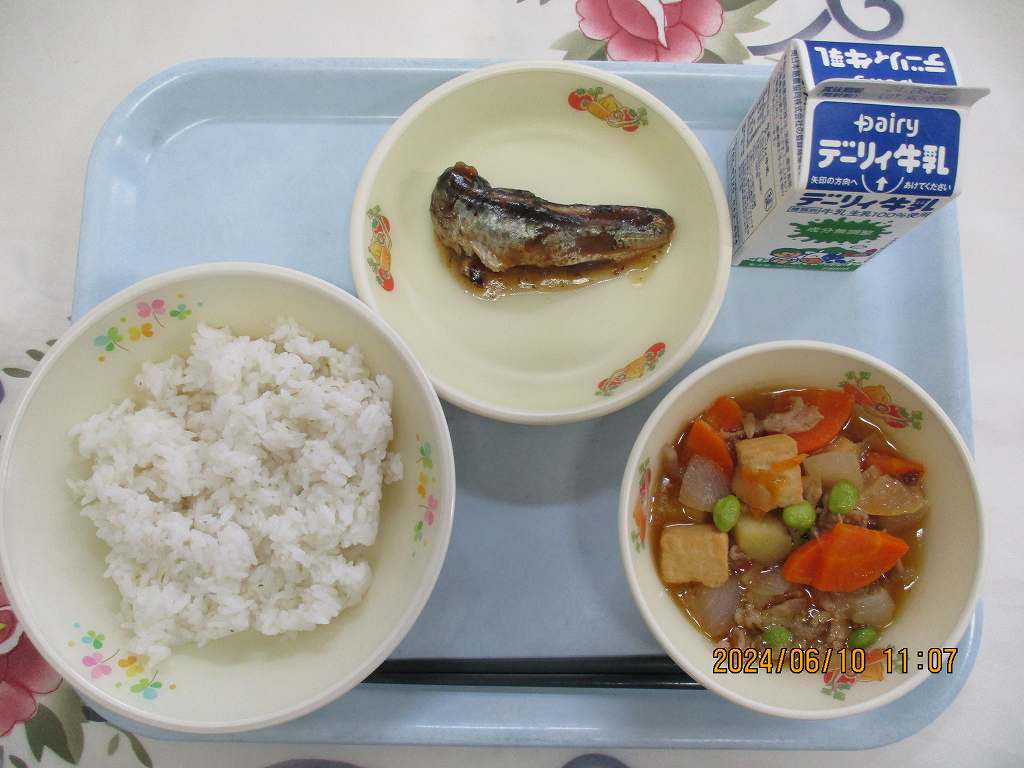 | 2024/06/10 2024年6月7日(金)の給食 【小学校】 麦ごはん、牛乳、さつま汁、きびなごソースだれ きびなごは・・・かごしまのきんかいでおおくとれる うるめいわしかのこざかなです。こしきじまやきんこうわんなどでは,とくにおおくとれるさかなです。いちねんじゅうとれるみじかなさかななので,むかしからしょみんのしょくせいかつにおおくとりいれられたきちょうなえいようげんだったようです。 【中学校】 コッペパン、牛乳、ポークシチュー、ゆでとうもろこし、いちごジャム 今日のとうもろこしは・・・隼人の農家の方々「いきいきランチクラブ」の“東原口さん”のとうもろこしです。とれたてのとても甘いとうもろこしです。今日は中学校分420本を納めてくださいました。感謝して味わって食べましょう。 |