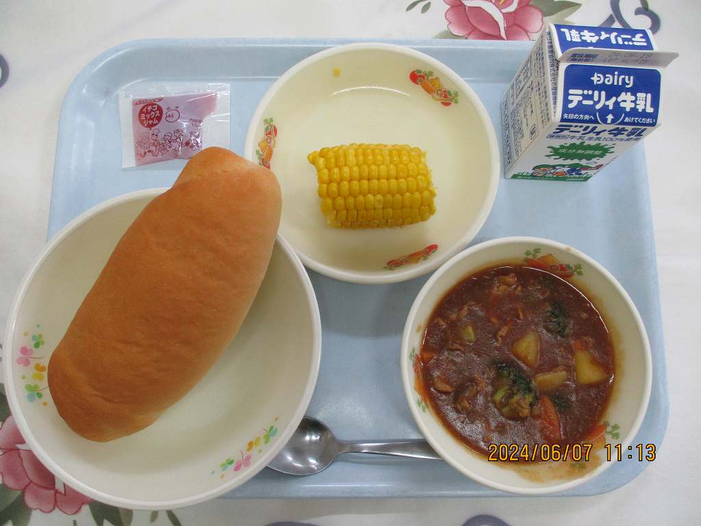 | 2024/06/13 令和6年6月13日(木)の給食 【小学校】 コッペパン、牛乳、ポークシチュー、ゆでとうもろこし、レーズンクリーム きょうのとうろもろこしは、はやとののうか「いきいきランチクラブ」の”ひがしはらぐちさん”のとうもろこしです。けさとれたてのあまいとうもろこしです。しょうがっこうぶん800ほんちかくおさめてくださいます。かんしゃして、あじわって、たべましょうね。 【中学校】 麦ごはん、牛乳、豚汁、さばのかば焼き風 さばは・・・古くから食べられている代表的な青魚です。脂肪には、血液をサラサラにしたり、コレステロールを下げてくれるDHAやEPAが多く含まれています。新鮮なさばを選ぶポイントは、目が澄んでいて、体に光沢があり、身がかたくしっかりしまっているもの、エラが赤いものがよいとされています。参考にしてください。 |