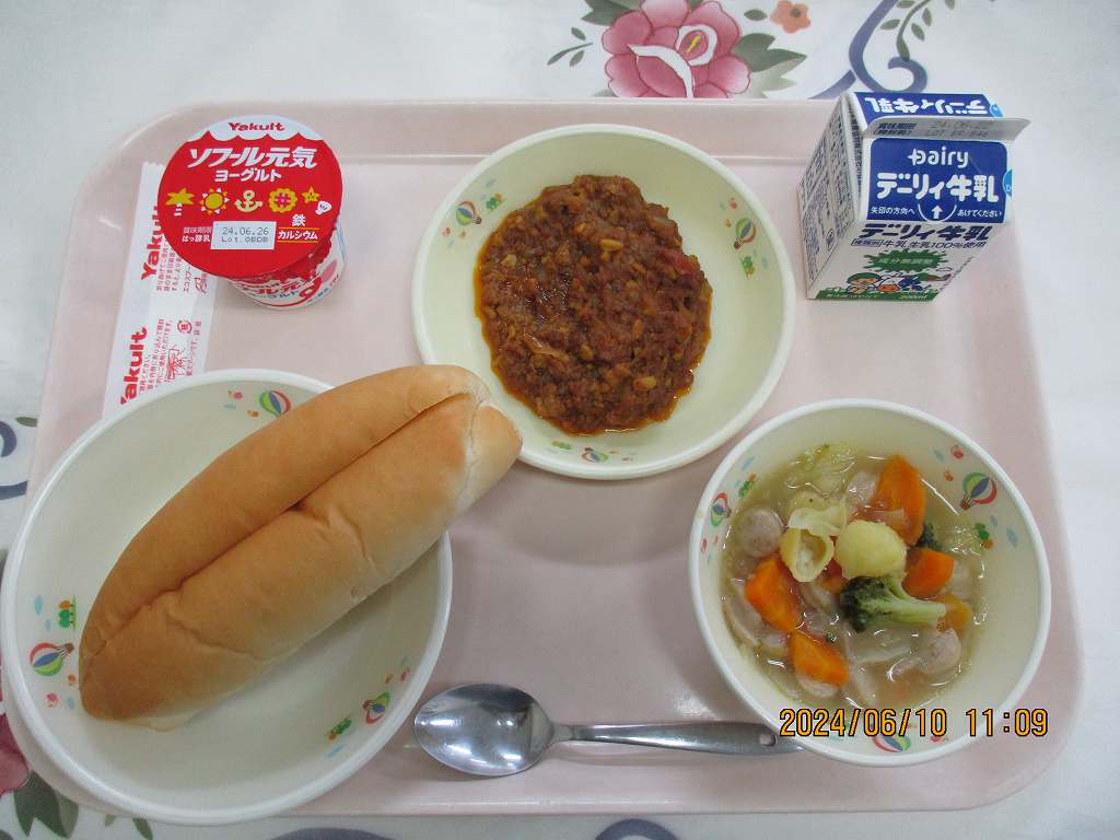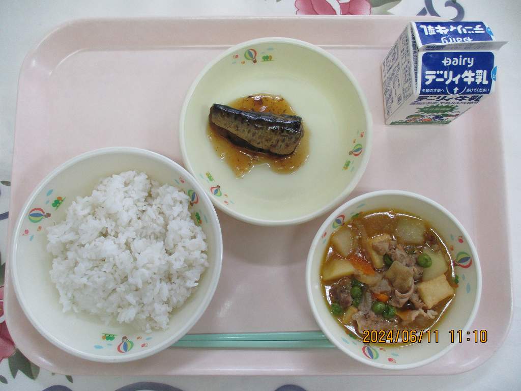 | 2024/06/12 2024年6月10日(月)の給食 【小学校】 米粉パン、牛乳、野菜のスープ煮、キーマカレー。ヨーグルト ヨーグルトは・・・「ぎゅうにゅう」と「にゅうさんきん」からつくられます。にゅうさんきんは、おなかのなかでちょうのはたらきをよくしてくれます。えいようは、ぎゅうにゅうとほとんどおなじで、たんぱくしつやカルシウムがほうふです。 【中学校】 麦ごはん、牛乳、肉じゃが、いわしの梅煮 6月は「歯と口の健康週間」よく噛むことでいろいろな効果があります。@唾液が出て消化がよくなります。Aあごが発達して歯並びがよくなります。B脳に刺激がいって頭の働きがよくなります。今日の給食も1口30回程度よく噛んで、残さず食べましょう。 |