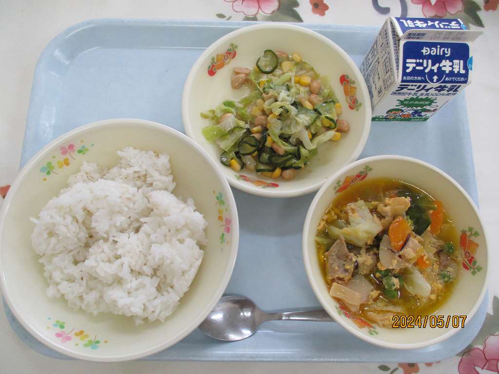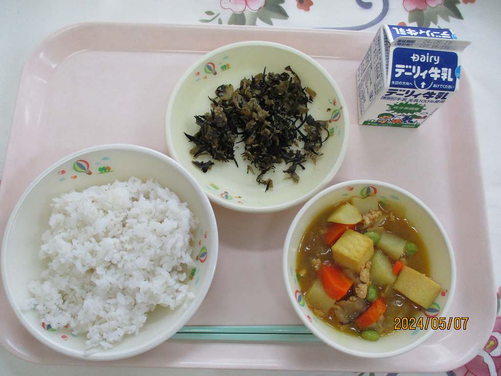 | 2024/05/09 2024年5月9日(木)の給食 【小学校】 コッペパン、牛乳、八宝豆腐、鶏肉のガーリック炒め、ぶどうゼリー はっぽうどうふは、 ちゅうかりょうりの「はっぽうさい」のアレンジメニューです。はっぽうさいは,にくややさいなどおおくのざいりょうを いれたうまにです。はっぽうは,やっつのたからとかきますが,おおくのざいりょうをつかうときに つけるなまえです。はっぽうどうふは,たくさんのざいりょうをつかった えいようまんてんのりょうりです。 【中学校】 麦ごはん、牛乳、ポークカレー、みかんサラダ 給食のカレーは、ルウから手作りしています。回転釜という大鍋で,マーガリンをとかし小麦粉とカレー粉を加えて,じっくり30分以上かけて作ります。また,ルウ以外に チーズ,ケチャップ,ウスターソース,プルーン,すりおろしりんごなども使って,特製カレーに仕上げています。 |