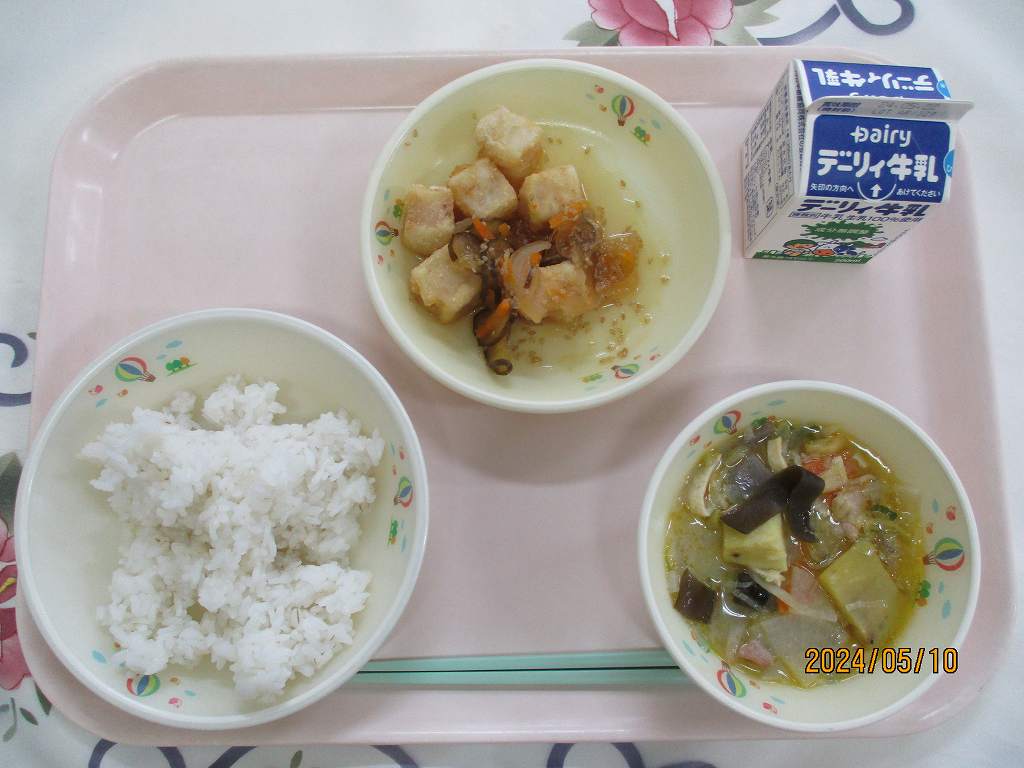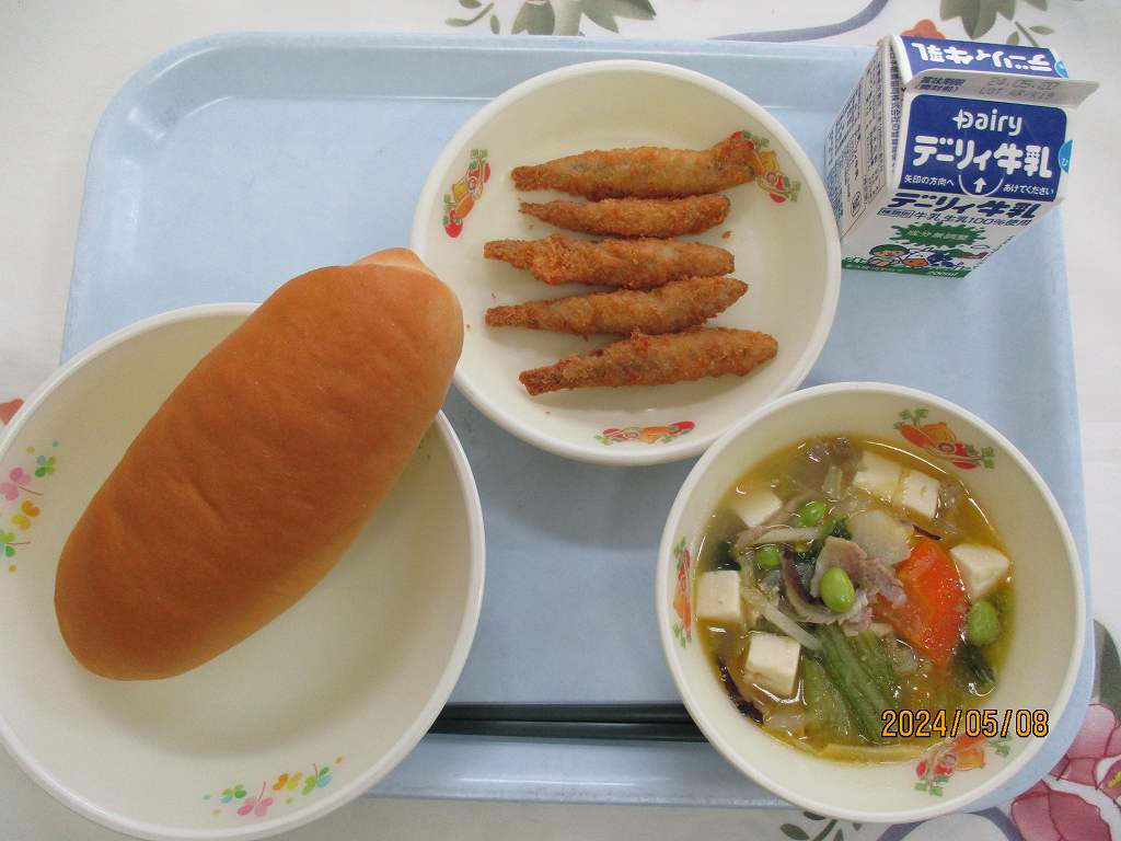 | 2024/05/09 2024年5月8日(水)の給食 【小学校】 麦ごはん、牛乳、かきたま汁、ピリ辛みそ たまごは、ねだんが,20ねんいじょうかわらず,ひかくてきやすいことから,「ぶっかのゆうとうせい」といわれてきました。でも,きょねんは,にわとりのびょうきがはやって,たまごのせいさんりょうがとてもへり,ねだんもぐんとあがりました。たまごは,たんぱくしつやしぼう,ビタミンエーなど,せいちょうきのみなさんにとてもやくだつえいようがほうふです。 【中学校】 コッペパン、牛乳、八宝豆腐、きびなごフライ きびなごは、イワシの仲間です。骨もいっしょに丸ごと食べることができるので,たんぱく質だけでなく,カルシウムや鉄分などもあり栄養満点です。鹿児島の特産品で,酢みそでいただく,きびなごの刺身は郷土料理として有名です。今日は丸ごとのフライにしました。よく噛んで食べてください。 |
