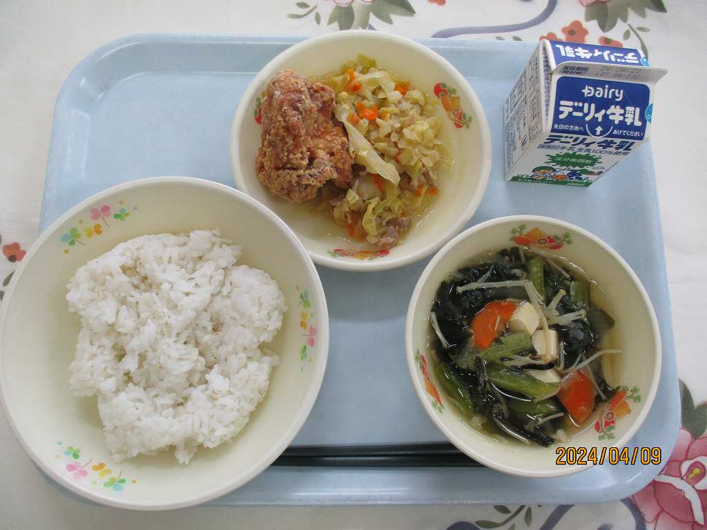 | 2024/04/09 2024年4月9日(火)の給食 【小学校】 麦ごはん、牛乳、ポークカレー、フルーツミックス きゅうしょくとうばんは、みんながおいしく、たのしくたべることができるようにみじたくをととのえましょう。せっけんで てをあらって、きゅうしょくぎ・マスク・ぼうしをつけましょう。ぐあいのわるいひとは、ほかのひとにかわってもらいましょう。 【中学校】 麦ごはん、牛乳、豆腐のすまし汁、鶏肉の唐揚げ、キャベツソテー 給食当番は、石けんで手を洗って、給食着・マスク・帽子をつけます。具合の悪い人は、他の人に代わってもらいましょう。給食前と給食後は給食台をきれいに拭きましょう。 |