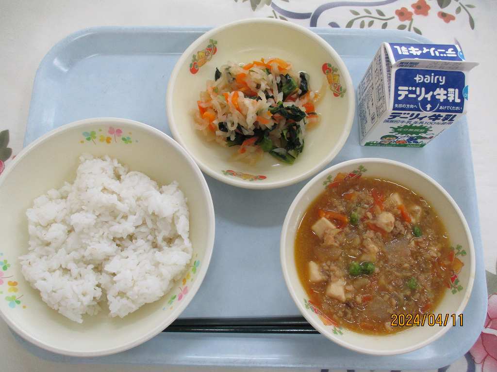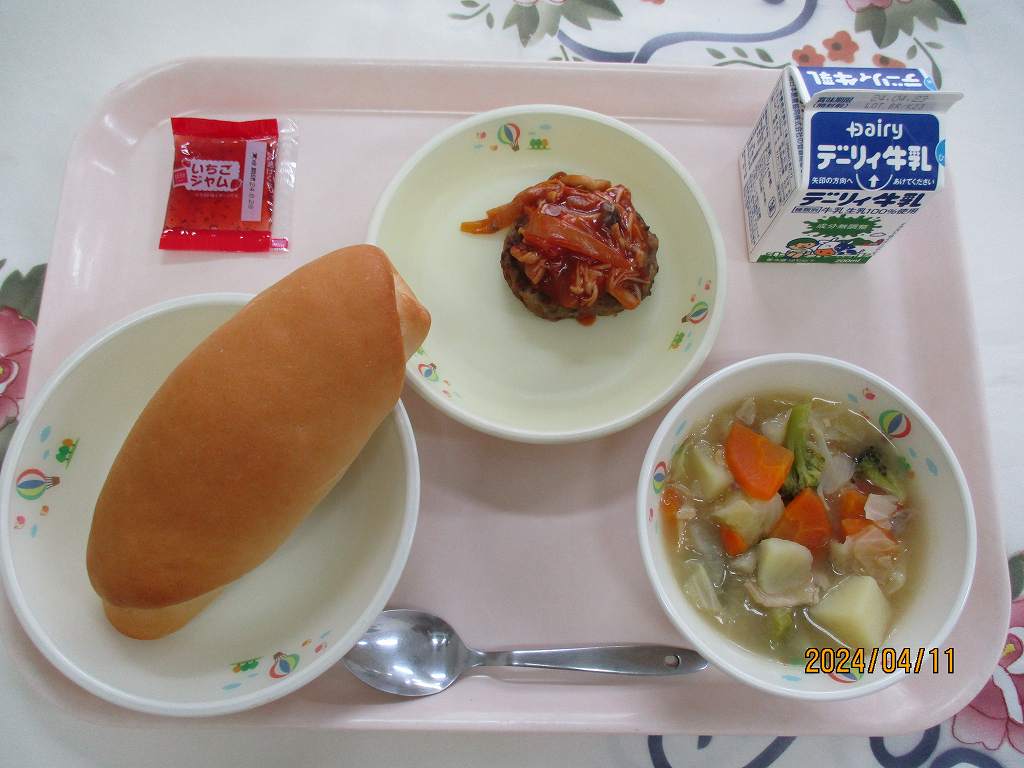 | 2024/04/11 2024年4月11日(木)の給食 【小学校】 コッペパン、牛乳、ジャーマンスープ、ハンバーグのきのこソースかけ、いちごジャム きゅうしょくのパンは、さとうをひかえて、しょうかがいいようにしっかりやいています。ていがくねん・ちゅうがくねん・こうがくねんでおおきさをかえてあります。のこさずたべましょう。 【中学校】 麦ごはん、牛乳、麻婆豆腐、ナムル ナムルは、朝鮮半島の家庭料理のひとつで、もやしなどの野菜や山菜、野草を塩ゆでしたものを調味料とごま油で和えたものです。またそうした食用の野菜、山菜、野草のこともナムルといいます。韓国では食事のおかずとして欠かせないものです。 |