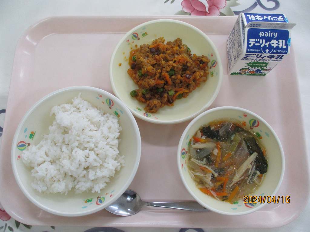 | 2024/04/10 2024年4月10日(水)の給食 【小学校】 麦ごはん、牛乳、マーボー豆腐、ナムル とうばんいがいのひとは、てをせっけんでしっかりあらって、しずかにまちましょう。きょうしつでさわがないようにしましょう。みんなできょうりょくして、きゅうしょくをたべましょう。 【中学校】 バーガーパン、牛乳、ジャーマンスープ、白身魚フライ、タルタルソース、お祝いクレープ 入学・進級おめでとう。今日はみなさんの入学・進級のお祝いクレープを出します。1年生にとっては、小学校より少し量が多くなりますが、体も一番大きくなる時期ですので、しっかり食べましょう。 |
