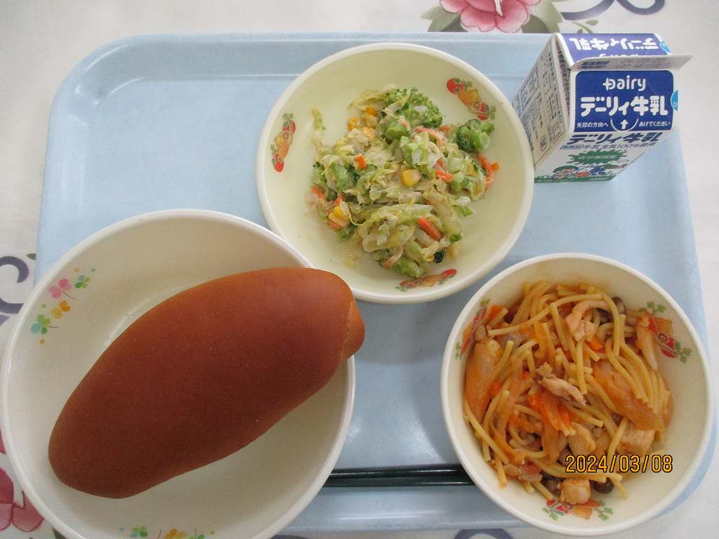 | 2024/03/12 2024年3月8日(金)の給食 【小学校】 麦ごはん、牛乳、ピリ辛みそ汁、白身魚の中華あんかけ はくさいは、ちゅうごくからつたわったやさいです。はくさいはやさいのなかでもすいぶんがおおくふくまれています。からだのちょうしをととのえるはたらきがあります。 【中学校】 黒糖パン、牛乳、スパゲティナポリタン、ごまドレッシングサラダ パスタは、小麦粉と水でこねたものを総称していいます。 ペン先のような形をしているペンネ、マカロニよりひと回り太くて表面にすじがあるリガトーニ、蝶の形のもの、スープの浮き実用に使われるものなどがあります。 |