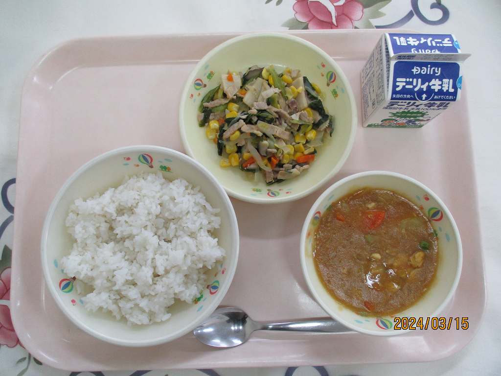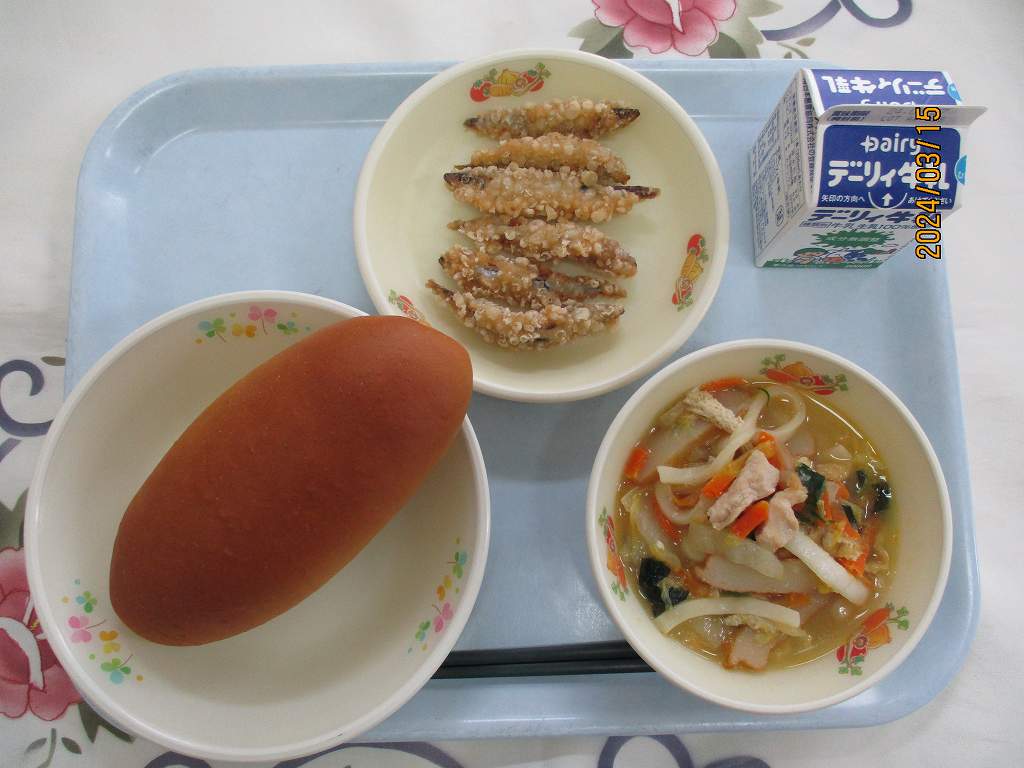 | 2024/03/19 2024年3月15日(金)の給食 【小学校】 麦ごはん、牛乳、チキンカレー、チンゲン菜ソテー じゃがいものえいようは、でんぷんのほかに,ビタミンもほうふで,とくにビタミンCがおおくふくまれています。 そのためフランスでは「大地(だいち)のりんご」とよばれています。 【中学校】 黒糖パン、牛乳、煮込みうどん、きびなごのサクサク揚げ きびなごは、鹿児島の郷土料理には欠かせない小魚です。ウルメイワシ科の長さ約10センチの小魚で、体は細長く、側面には幅の広い銀白色の帯があります。南九州で多く獲れ、本州の中部以南から熱帯に分布します。 |