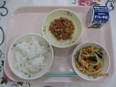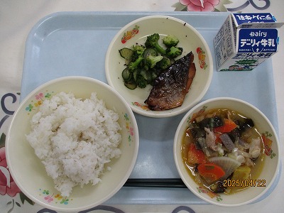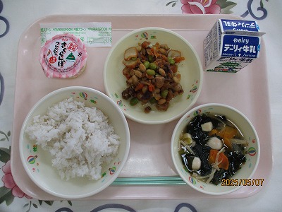 | 2025/04/23 2025年4月22日(火)の給食 【小学校】 しろごはん、牛乳、かきたまうどん、スタミナなっとう なっとうは、やわらかくにただいずに「なっとうきん」をうえつけて、はっこうさせたものです。なっとうのネバネバのいとのなかのせいぶん「ナットウキナーゼ」は、けつえきをサラサラにして、からだのろうかをふせぐはたらきがあります。 【中学校】 麦ごはん、牛乳、豚汁、ぶりの照り焼き、ゆかりあえ さつまいもは、400年前に中国から沖縄に伝わり、やがて鹿児島でもつくられるようになりました。栄養的には、ビタミンCや食物繊維を多く含んでいて、からだの調子を整える働きがあります。 |