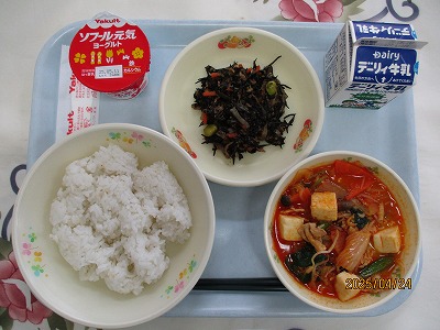 | 2025/04/25 2025年4月24日(木)の給食 【小学校】 バーガーパン、牛乳、ふわふわたまごスープ、さけフライ、やさいタルタルソース たまごは、からのいろがしろいタイプとあかいタイプがありますが,にわとりのしゅるいによるちがいで,えいようかはおなじです。しょうみきげんは,なまでたべられるきかんがかいてあります。きょうは、たまごとパンこをあわせてふわふわスープにしあげました。 【中学校】 麦ごはん、牛乳、豆腐チゲ、カツオひじき、ヨーグルト ひじきは、乾燥前は、黒色ではなく、茶色っぽい黄土色して、海に生えている海藻の仲間です。骨や歯をつくるカルシウムが豊富に含まれています。ひじきは動脈硬化を防ぎ、血圧をさげる効果や歯を丈夫にし、髪のつやもよくします。今日は、かつおと一緒に炒めました。ごはんにかけて食べてください。 |