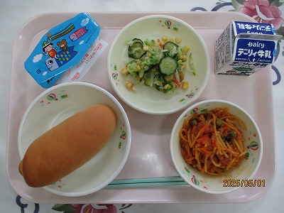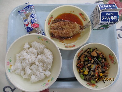 | 2025/05/01 2025年5月1日(木)の給食 【小学校】 コッペパン、牛乳、ミートスパゲティ、コーンサラダ、こいのぼりゼリー こどもの日は「たんごのせっく」ともいいます。こどもたちがげんきにそだち、おおきくなったことをおいわいするひです。かしわもちをたべるふうしゅうがありますが、これはかしわのはっぱは、あたらしいめがでてこないかぎり ふるいはっぱはおちないことから、えんぎがよいものとされているからです。 【中学校】 麦ごはん、牛乳、ひじきソテー、いわしのかばやき、柏餅 5月5日は端午の節句です。子どもたちが元気に育ち大きくなったことをお祝いする日です。全国的に柏餅を食べる風習がありますが、これは柏の葉が、新しい芽が出てこないかぎり古い葉が落ちないことから、子孫が繁栄し縁起がいいからだそうです。鹿児島県では、あくまきやかからん団子も食べますね。 |