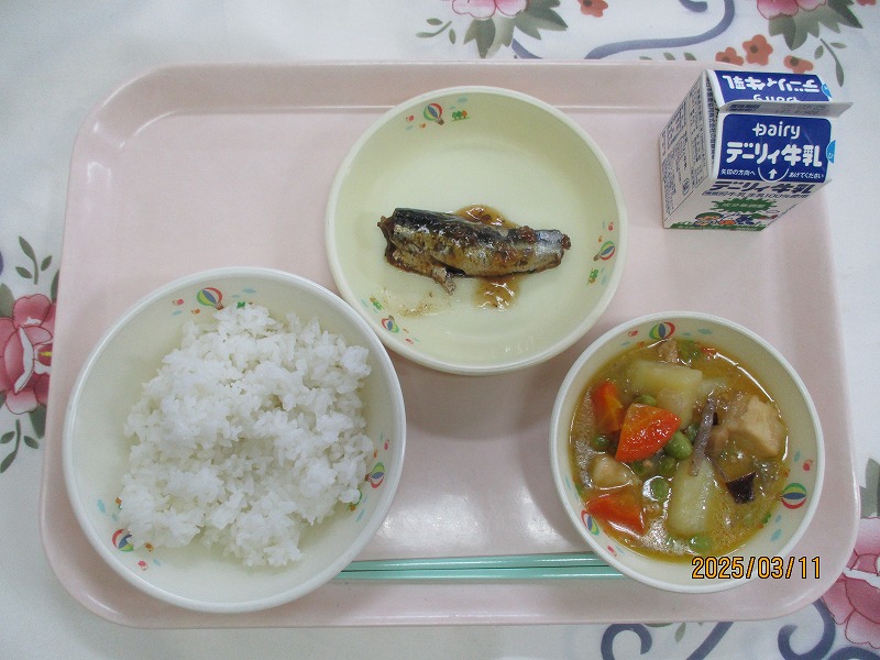 | 2025/03/17 2025年3月13日(木)の給食 【小学校】 バーガーパン、牛乳、ミネストローネ、しろみさかなフライ、タルタルソース わたしたちのてのはだは、うすいまくのようなあぶら(ひしといいます)で、おおわれています。てがよごれると、よごれのせいぶんがこのあぶらとまざって、みずあらいしただけではなかなかおちません。そこで、せっけんのでばんですせっけんは、あぶらとまざっているよごれをつつみこんで、とりのぞいてくれます。だから、せっけんをつかったほうがいいんです。 【中学校】 麦ごはん、牛乳、さつま芋と豚肉の煮物、高菜ひじきそぼろ 高菜は冬の寒さの中で栽培され、寒暖の差が激しくなることで、葉に旨味と辛さが蓄えられます。ほうれん草などよりもずっと大きく高く成長するので、「高菜」という名前になりました。九州各地で栽培されており、熊本県阿蘇地方の「阿蘇高菜」や福岡県筑後地方の「三池高菜」が有名です。今日の高菜漬けは、県内産です。 |