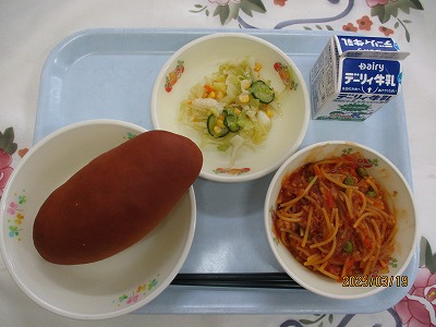 | 2025/03/19 2025年3月19日(水)の給食 【小学校】 麦ごはん、牛乳、ちゃんこなべ、くきわかめのごまいため 「たべるときのしせい」をかくにんしましょう。ゆかにあしをつけ、つくえとのあいだは、にぎりこぶし1こぶんあけてせすじをのばしすわりましょう。からだをしょっきにちかづけようと「ねこぜ」にならないように しょっきは、てにもちましょう。からだをまげたままでたべると、いにふたんがかかり、えいようをじゅうぶんにきゅうしゅうすることができません。 【中学校】 黒糖パン、牛乳、ミートスパゲティ、コーンサラダ 今日は食育の日です。「食べる時の姿勢」について確認してみましょう。今、あなたは、体を食器に近づけようと、背中を曲げた「猫背」になっていませんか。体を曲げたままで食べると、胃に負担をかけてしまい、せっかく食べた食品の栄養を充分に吸収することができません。背筋を伸ばして、食器は手に持ち、一口ずつゆっくりよく噛んでいただきましょう。 |