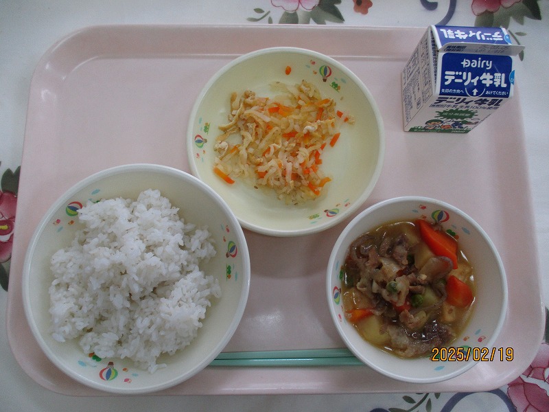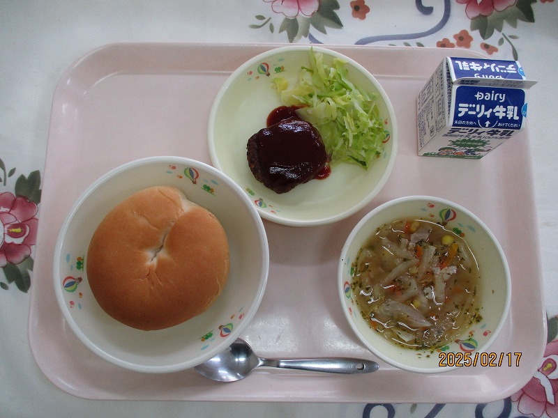 | 2025/02/19 2025年2月19日(水)の給食 【小学校】 麦ごはん、牛乳、にくじゃが、いりなます まいつき19日はしょくいくの日です。こんげつは「けんこうなしょくせいかつについてかんがえよう」です。ふきそくなしょくせいかつをおくることで、びょうきになりやすくなります。きそくただしいしょくせいかつをこころがけましょう。 【中学校】 バーガーパン、牛乳、ラビオリスープ、ハンバーグ、スライスチーズ 毎日朝食を食べていますか?朝食は1日のスタートであり,元気の源です。特に成長期の皆さんにとっては決して欠かすことはできません。食べることの大切さを知り,バランスのいい朝食をとるように心がけましょう。 |
