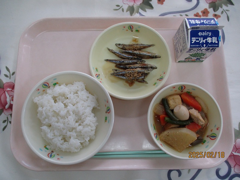 | 2025/02/19 2025年2月18日(火)の給食 【小学校】 しろごはん、牛乳、みそおでん、きびなごのかばやき きびなごは、かごしまのきんかいでおおくとれる,うるめいわしかのこざかなです。こしきじまやきんこうわんなどでは,とくにおおくとれるさかなです。いちねんじゅうとれるみじかなさかななので,むかしからしょみんのしょくせいかつにおおくとりいれられたきちょうなえいようげんだったようです。 【中学校】 麦ごはん、牛乳、ポークカレー、ウインナーとほうれん草のソテー カレー粉の発祥地はインドです。原料には黄色い色のウコン・サフラン、辛味のこしょう・唐辛子・ジンジャー・マスタード、香りのコリアンダー・クミン・シナモン・オールスパイスなど20種類以上の香辛料を合わせています。 |