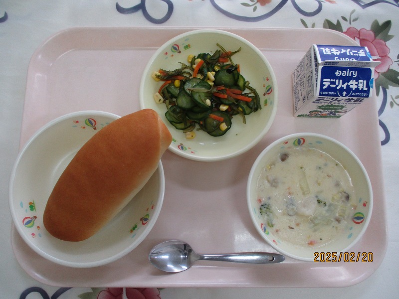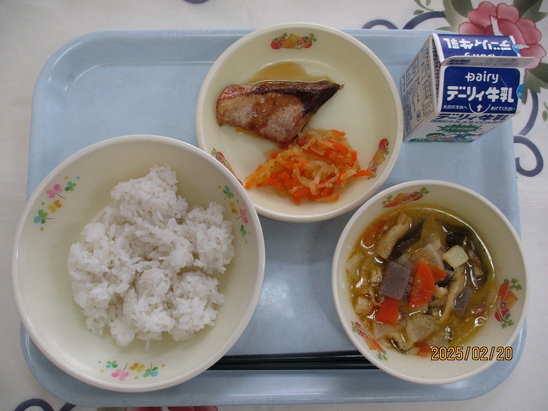 | 2025/02/20 2025年2月20日(木)の給食 【小学校】 コッペパン、牛乳、ふゆやさいのクリームに、かいそうサラダ かいそうには、ほねやはをつくるカルシウム・ビタミン・しょくもつせんいがおおくふくまれていています。ひんけつをふせいだり、ちょうのはたらきをよくするはたらきがあります。 【中学校】 麦ごはん、牛乳、豚汁、ぶりの照り焼き、いりなます ぶりは「出世魚」として有名で、“はまち→めじろ→ぶり” と呼び方が変わります。ぶりは80センチ以上に成長したものになります。1月〜2月頃が旬で、油がのっていてとてもおいしい時期です。 |