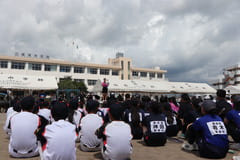暑い中でしたが、代表生徒の熱い思いに、全生徒、保護者が真剣に聞き入りました。