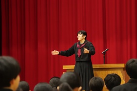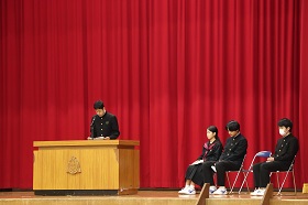 終業式では、各学年と生徒会の代表生徒が2学期を振り返り、自ら感じたことを述べてくれました。