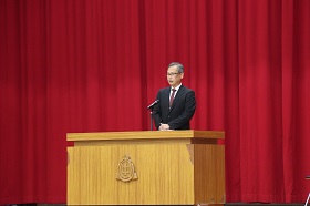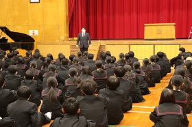 最後に生徒指導担当の先生から冬休みの過ごし方の注意事項が伝えられ、真剣に聞いていました。