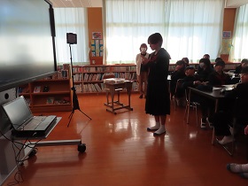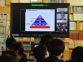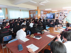 1、2年生を対象に(株)明治のリモートの出前講座を利用して「食に関する指導」を行いました。