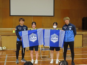 最後には、選手からサイン色紙とフラッグを頂き、全員で記念写真を撮りました。